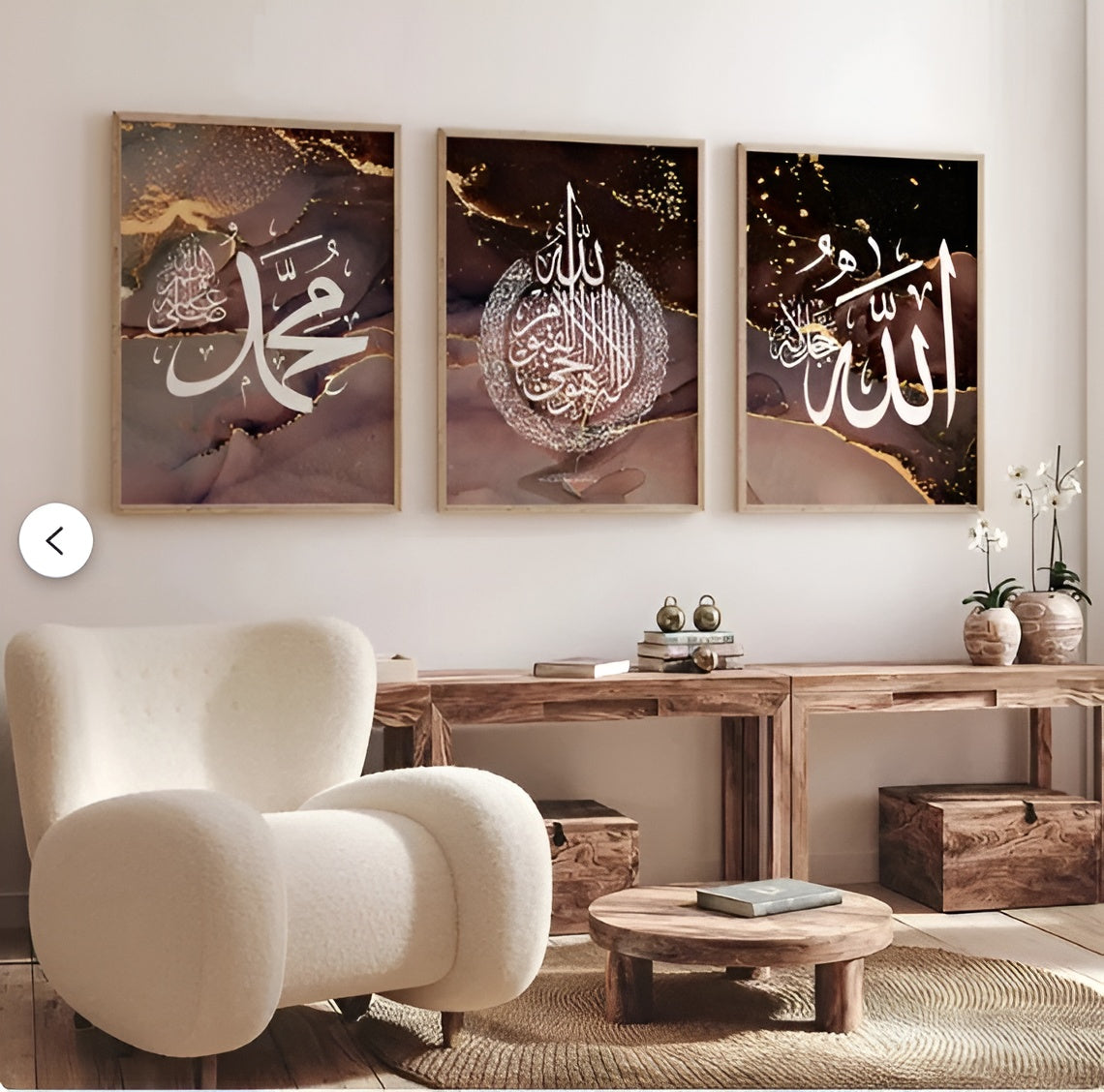3 Piece Islamic MDF Wall Art Frames - No Drilling Required